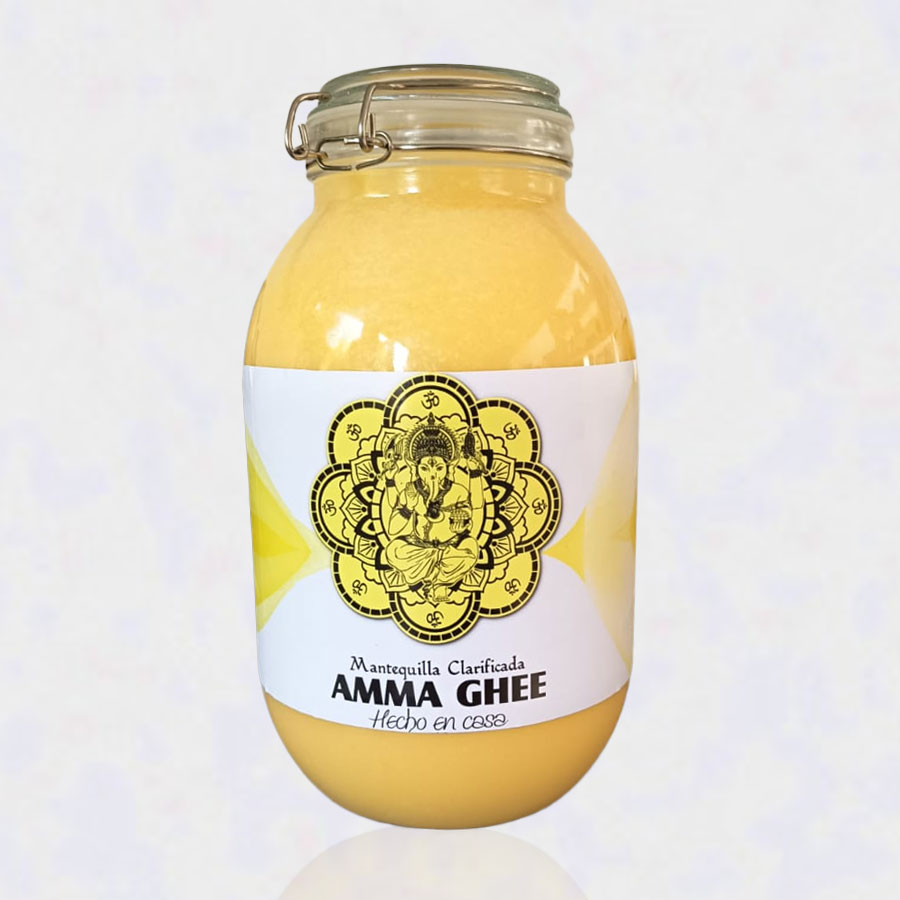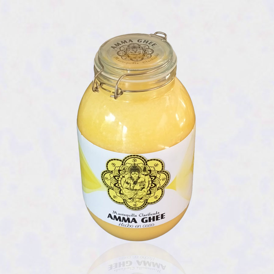 El Ghee es un alimento obtenido de la purificación de la mantequilla sin sal, mediante un proceso totalmente natural. Es puro y se le considera un alimento superior, que se utiliza en la India hace miles de años. Le llaman “El oro de los alimentos” y “Elixir de la juventud”, Promueve la longevidad, pues regula la digestión, depura el hígado y rejuvenece los órganos internos y la piel. Aparte de su uso en comidas y preparaciones, también se usa directamente en la piel